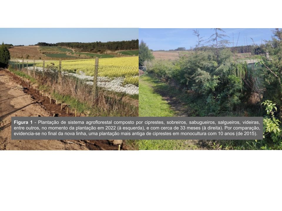 e foca-se na regeneração de um agroecossistema ripícola através da plantação em linhas bem definidas de uma agrofloresta de sucessão natural.